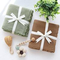 Recién llegado, manta de punto de algodón 100%, rejilla de diamante personalizada, nombre bordado, suave, transpirable, borde festoneado, manta receptora