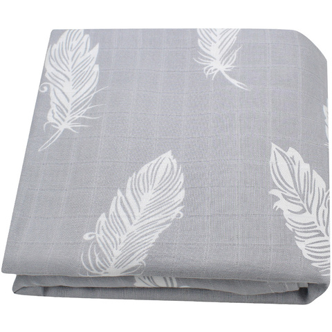 グレーフェザー通気性ソフト120*120カスタムプリント有機竹綿ベビーモスリンおくるみ毛布